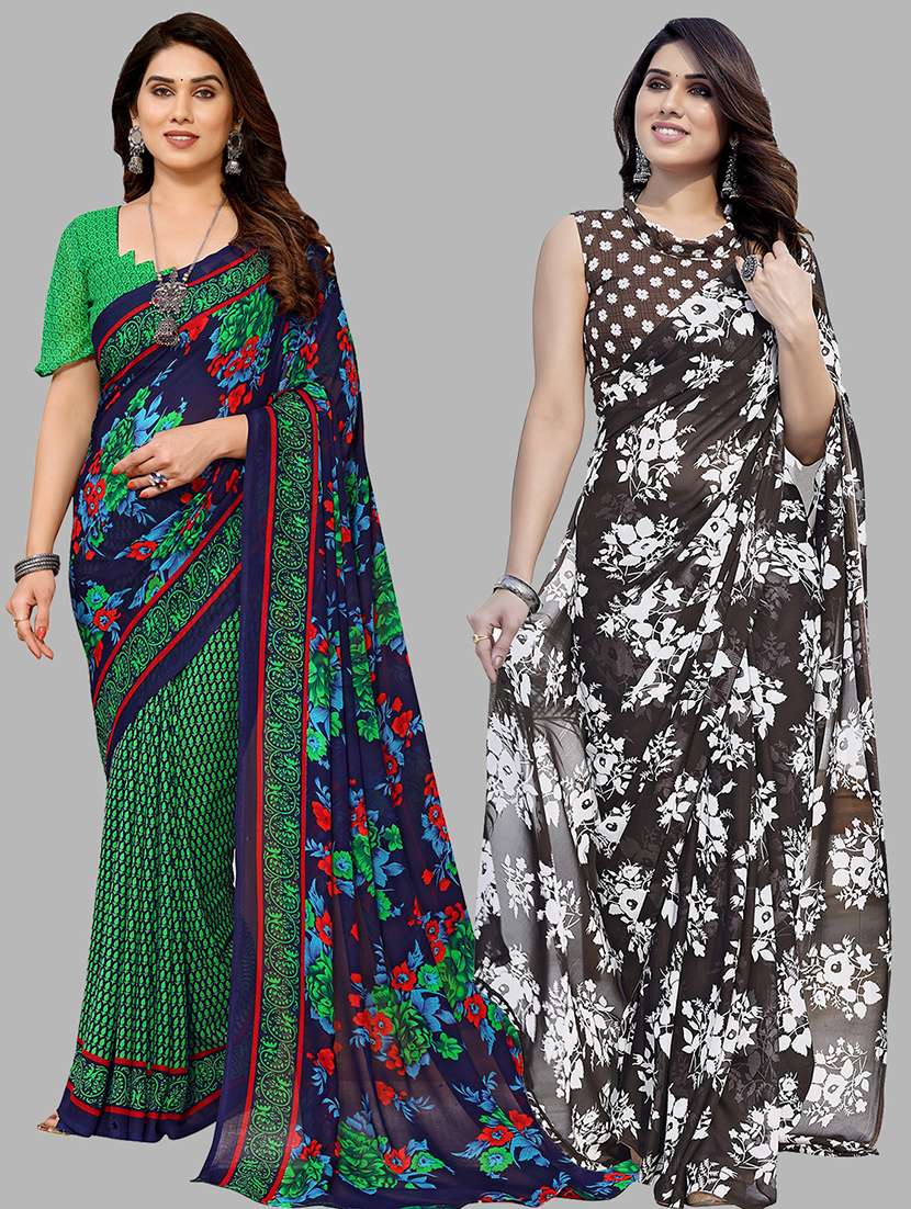 pack of 2 printed casual wear sarees with blouse - 21441195 - Very Small Image - 1