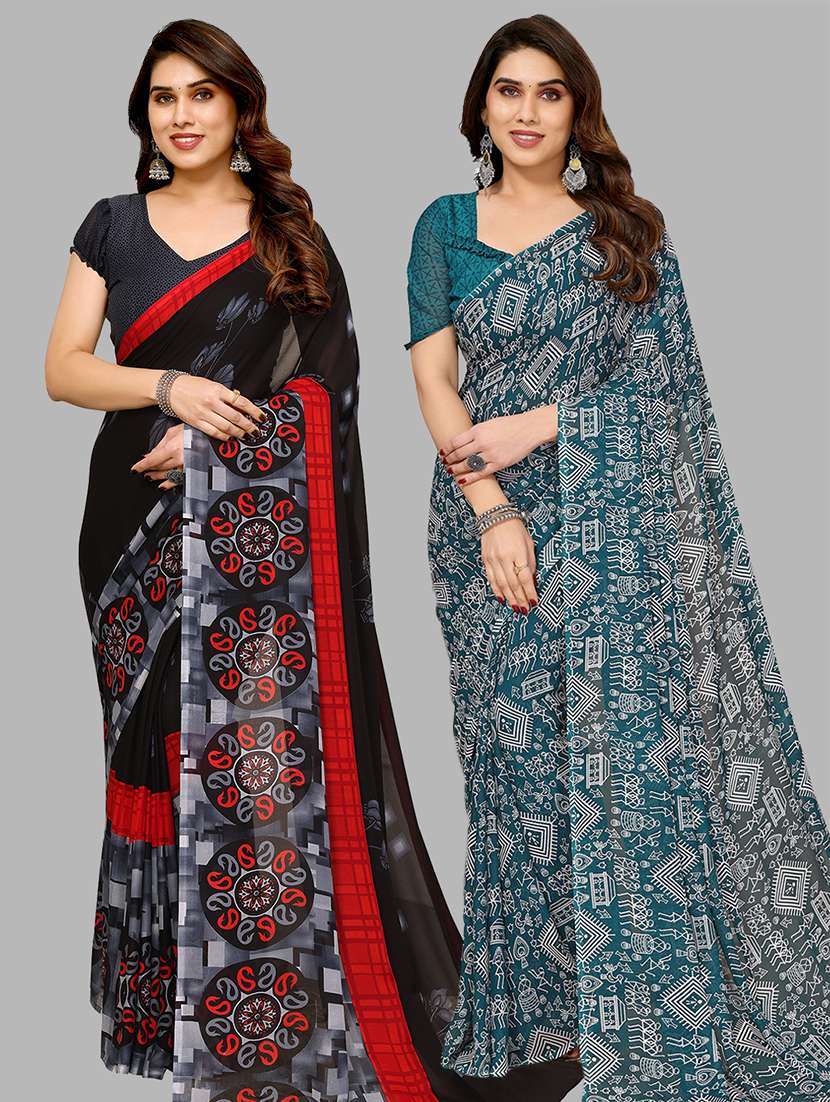 pack of 2 printed casual wear sarees with blouse
