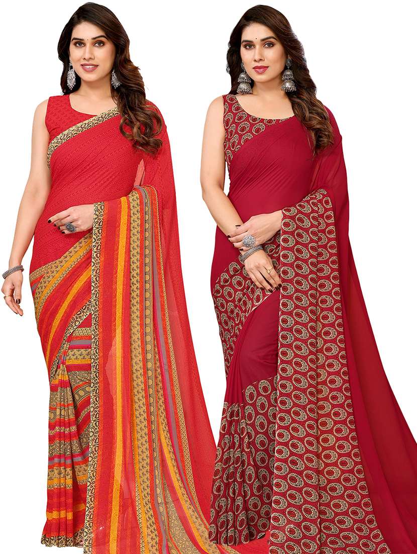 pack of 2 printed casual wear sarees with blouse - 21441287 - Very Small Image - 1