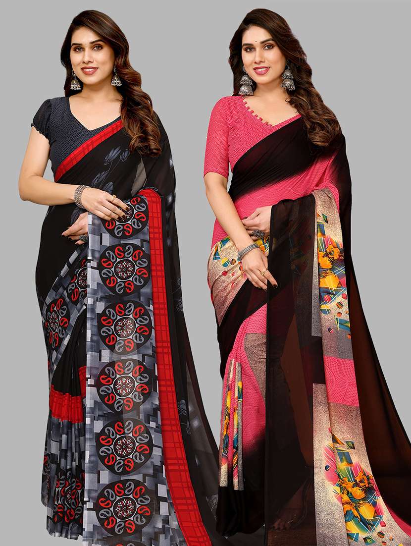 pack of 2 printed casual wear sarees with blouse - 21441337 - Very Small Image - 1