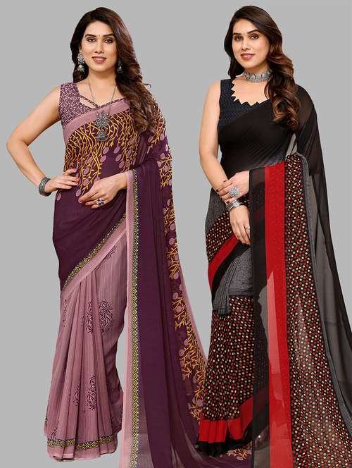 pack of 2 printed casual wear sarees with blouse - 21441363 - Very Small Image - 1