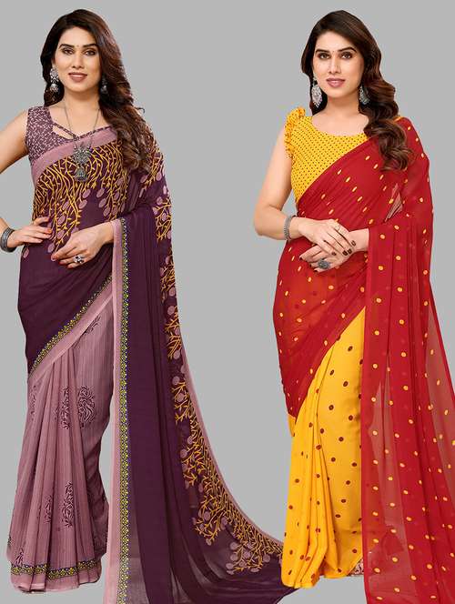 pack of 2 printed casual wear sarees with blouse - 21441390 - Very Small Image - 1