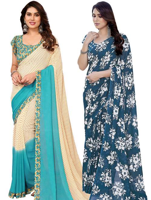 pack of 2 printed casual wear sarees with blouse - 21441396 - Very Small Image - 1