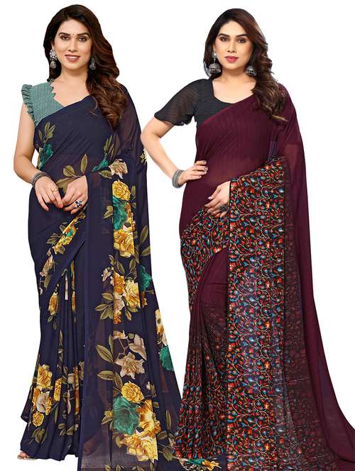 pack of 2 printed casual wear sarees with blouse - 21441404 - Very Small Image - 1