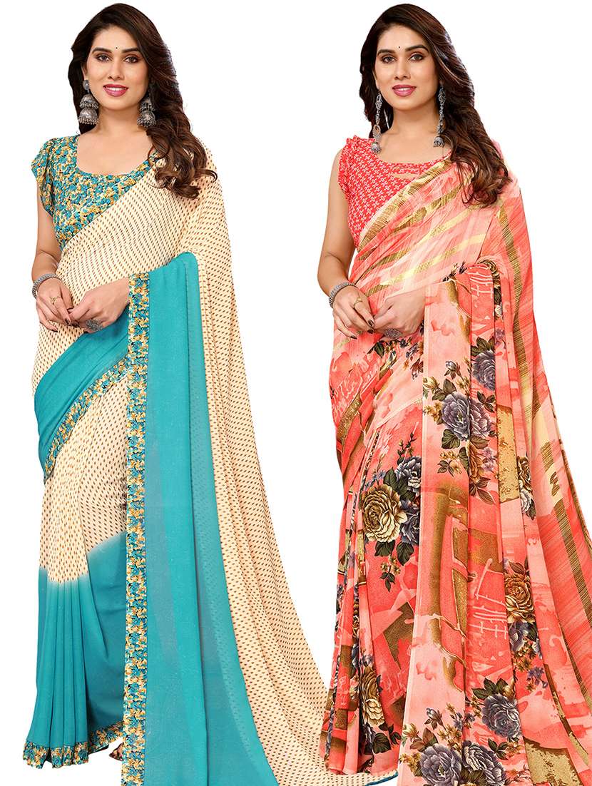 pack of 2 printed casual wear sarees with blouse - 21441461 - Very Small Image - 1