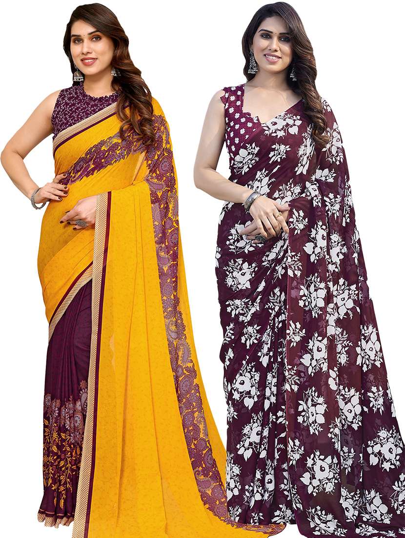 pack of 2 printed casual wear sarees with blouse - 21441465 - Very Small Image - 1