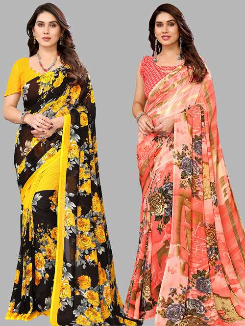 pack of 2 printed casual wear sarees with blouse