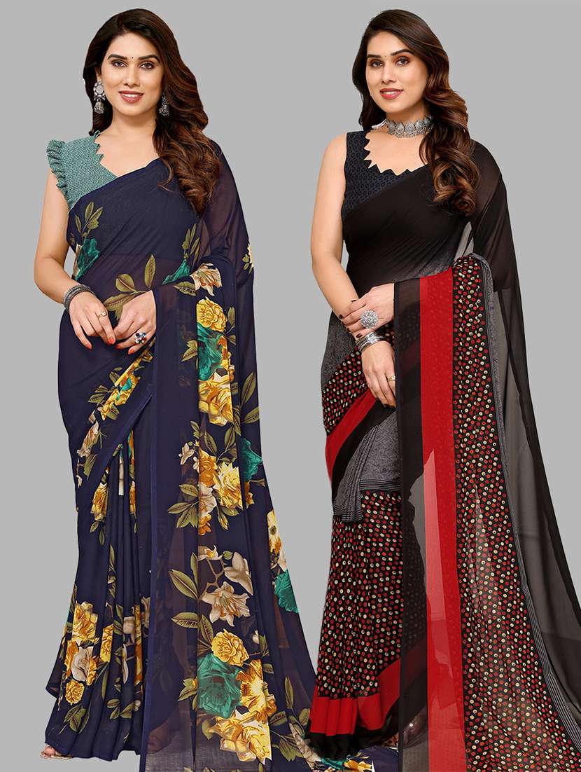 pack of 2 printed casual wear sarees with blouse - 21441495 - Very Small Image - 1