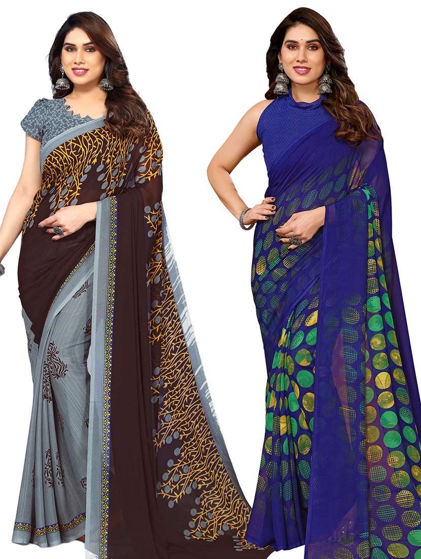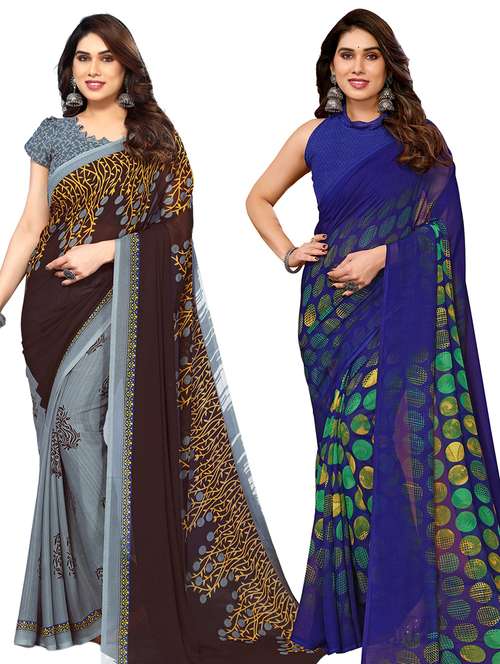 pack of 2 casual wear combo sarees with blouse - 21441506 - Very Small Image - 1