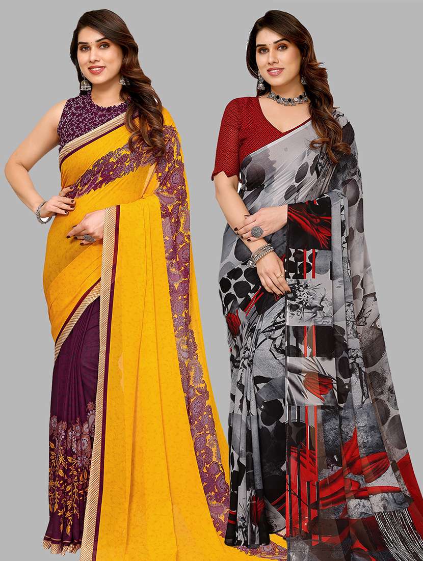 pack of 2 casual wear combo sarees with blouse - 21441530 - Very Small Image - 1