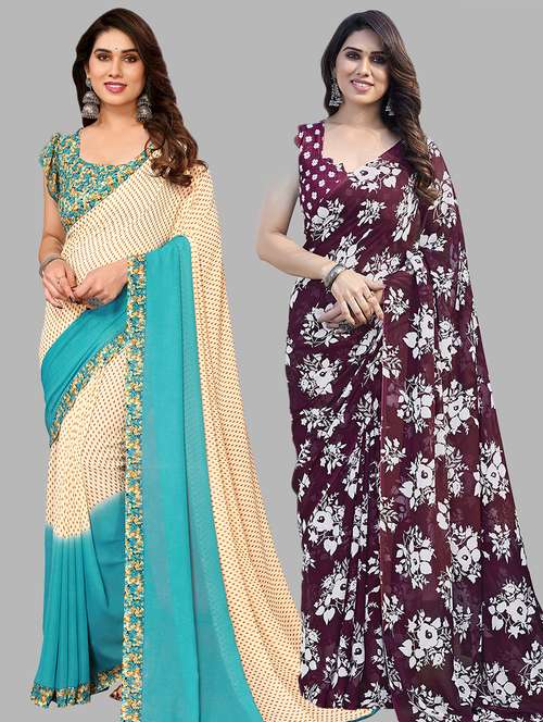 pack of 2 casual wear combo sarees with blouse