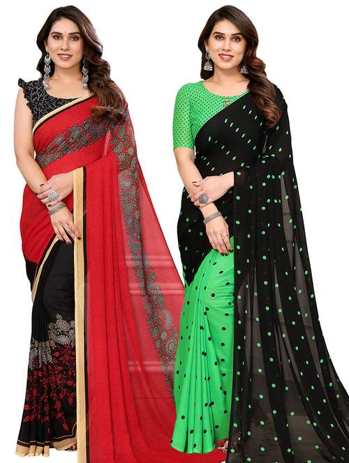 pack of 2 casual wear combo sarees with blouse - 21441583 - Very Small Image - 1