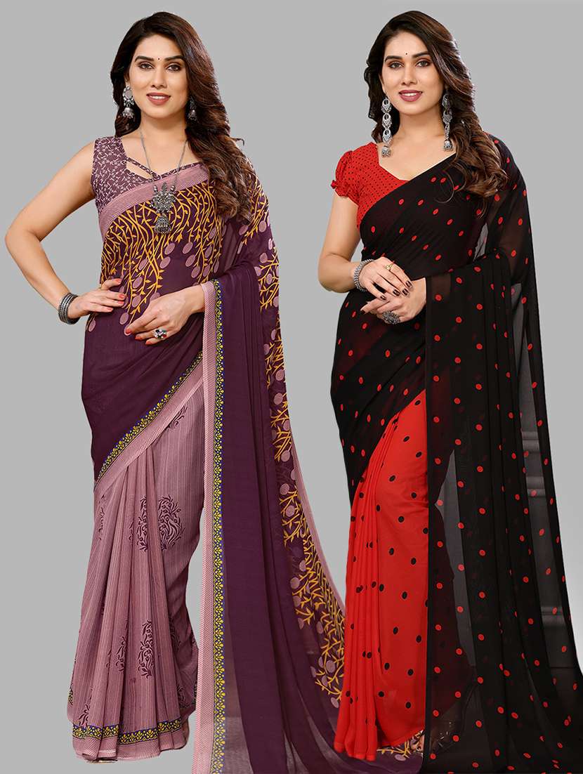 pack of 2 casual wear combo sarees with blouse