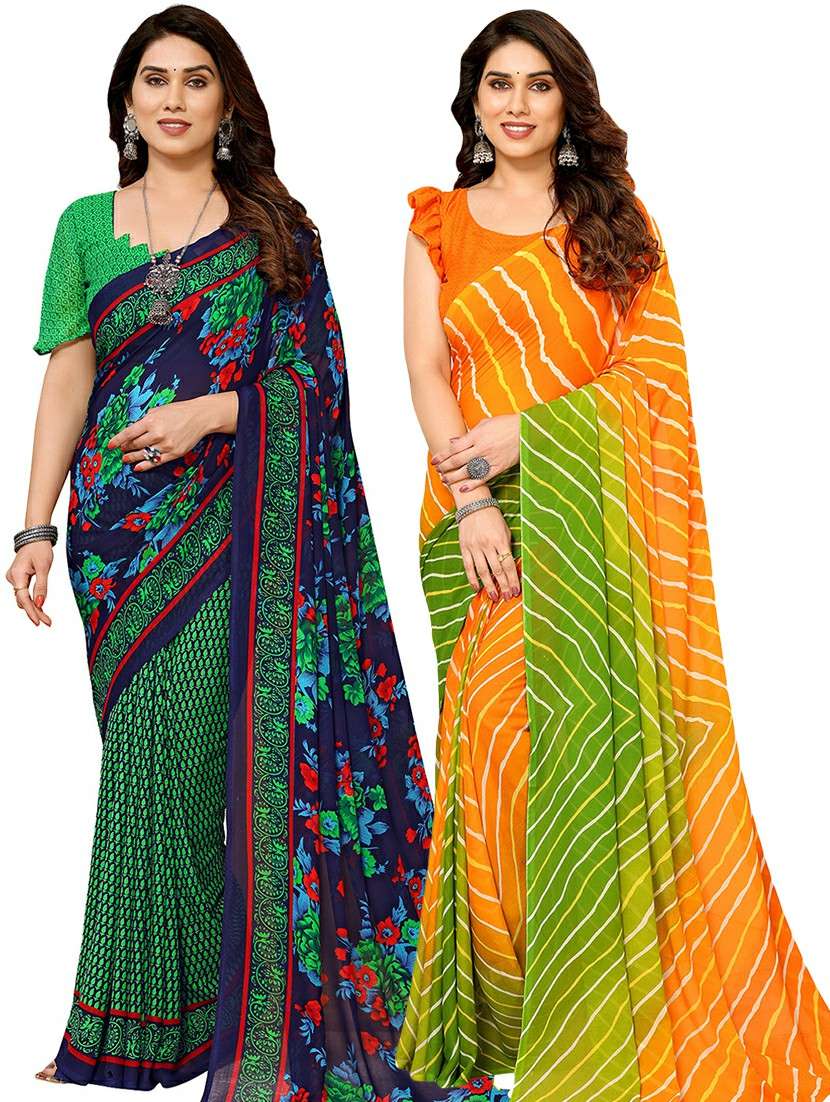 pack of 2 casual wear combo sarees with blouse