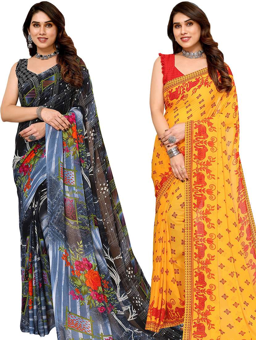 pack of 2 casual wear combo sarees with blouse