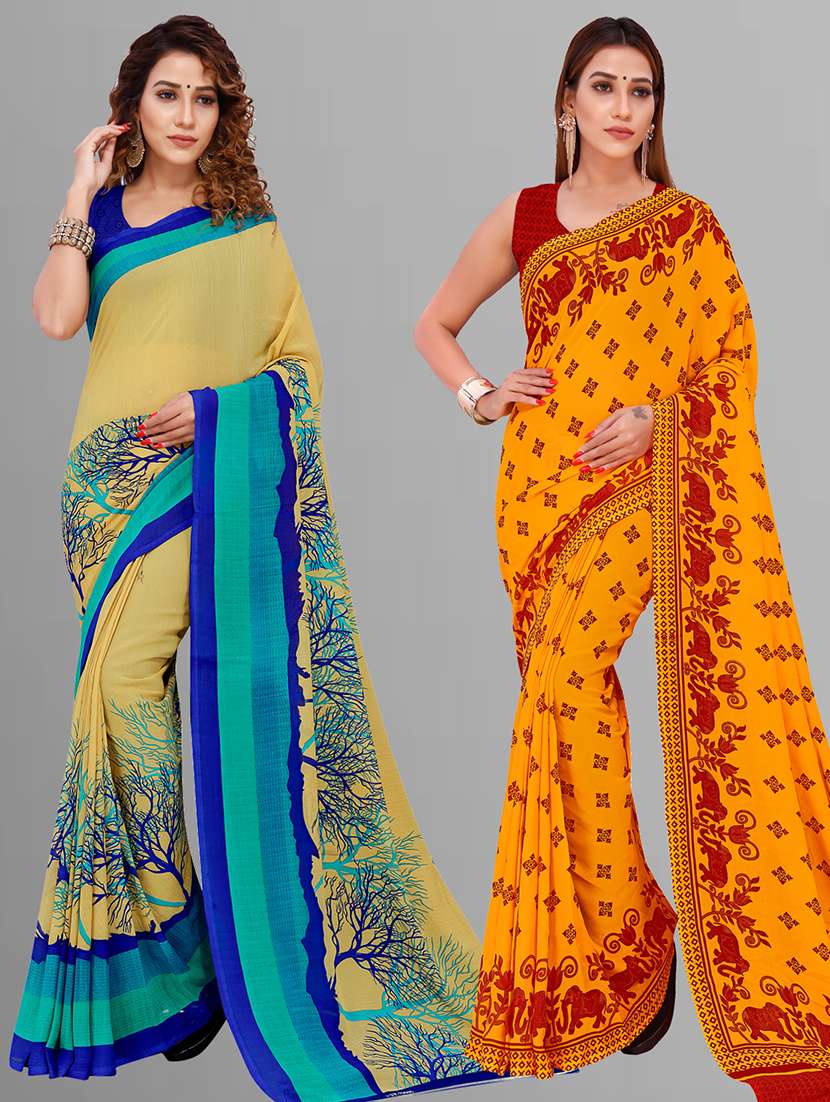 women pack of 2 casual wear combo sarees with blouse - 21443792 - Very Small Image - 1