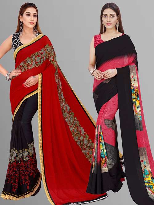 women pack of 2 casual wear combo sarees with blouse