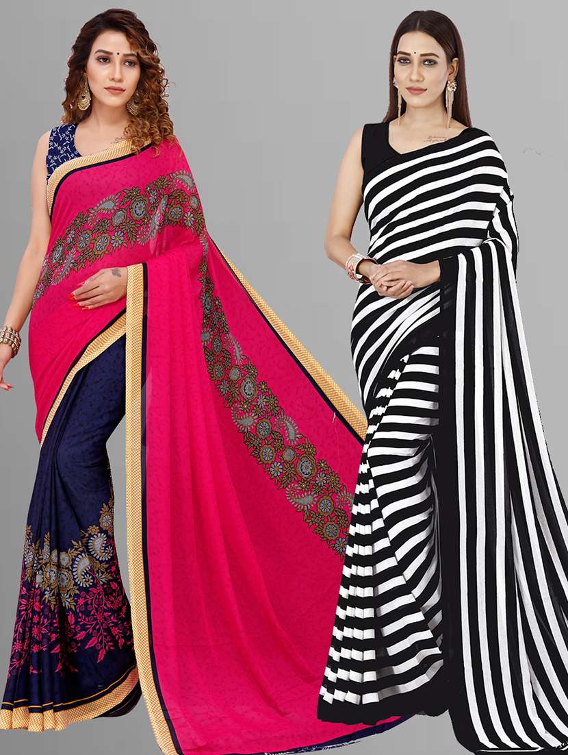 women pack of 2 casual wear combo sarees with blouse - 21444348 - Very Small Image - 1