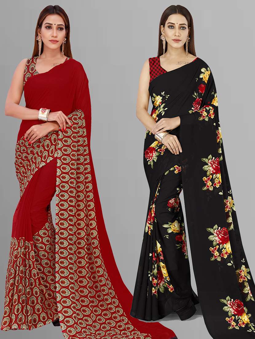 women pack of 2 casual wear combo sarees with blouse