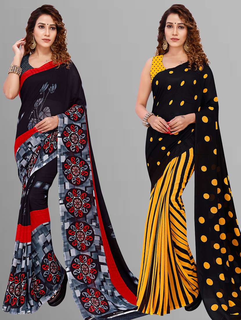 women pack of 2 casual wear combo sarees with blouse