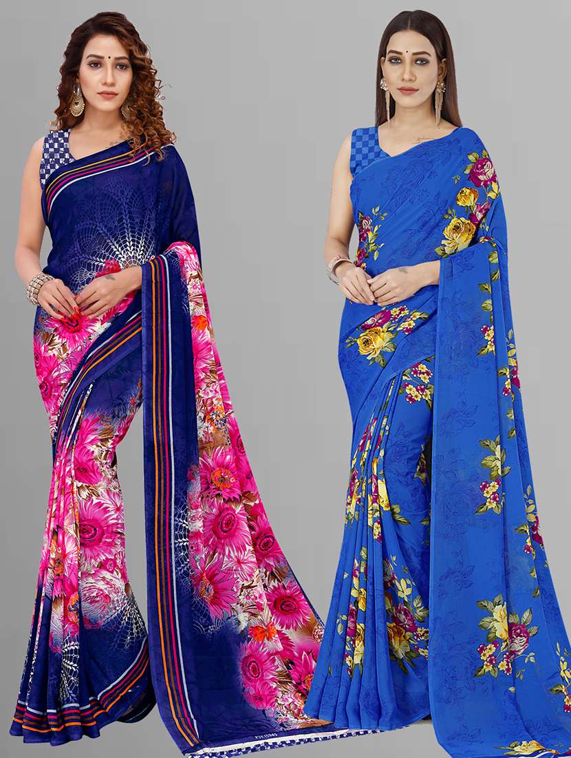 pack of 2 casual wear sarees with blouse - 21444663 - Very Small Image - 1