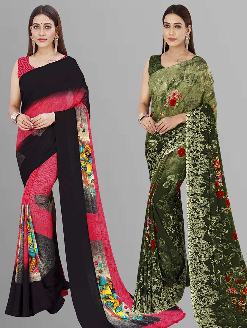 pack of 2 printed casual wear sarees with blouse