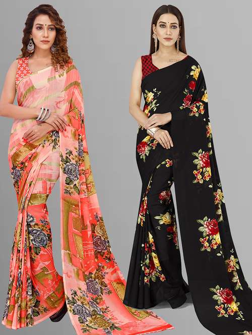 women pack of 2 casual wear combo sarees with blouse - 21444729 - Very Small Image - 1