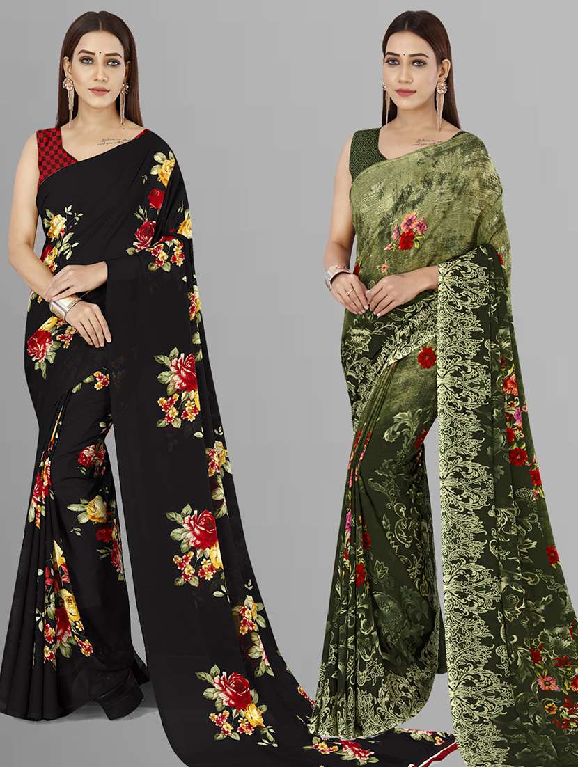 women pack of 2 casual wear combo sarees with blouse