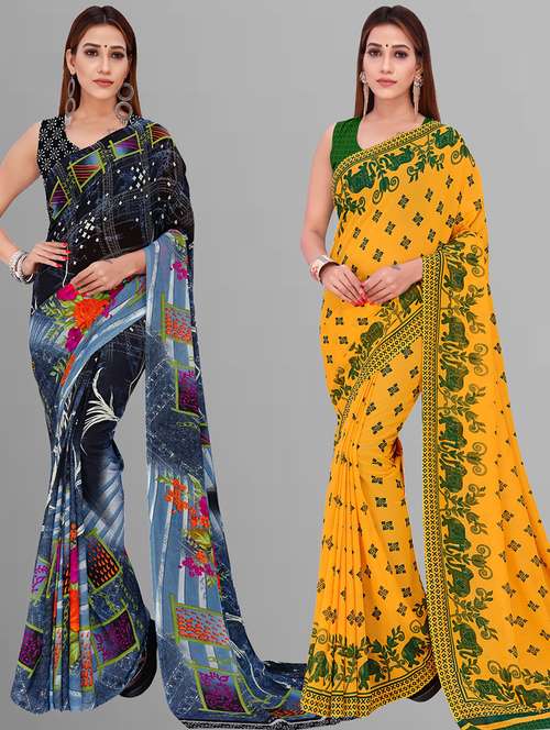 pack of 2 casual wear combo sarees with blouse - 21444828 - Very Small Image - 1