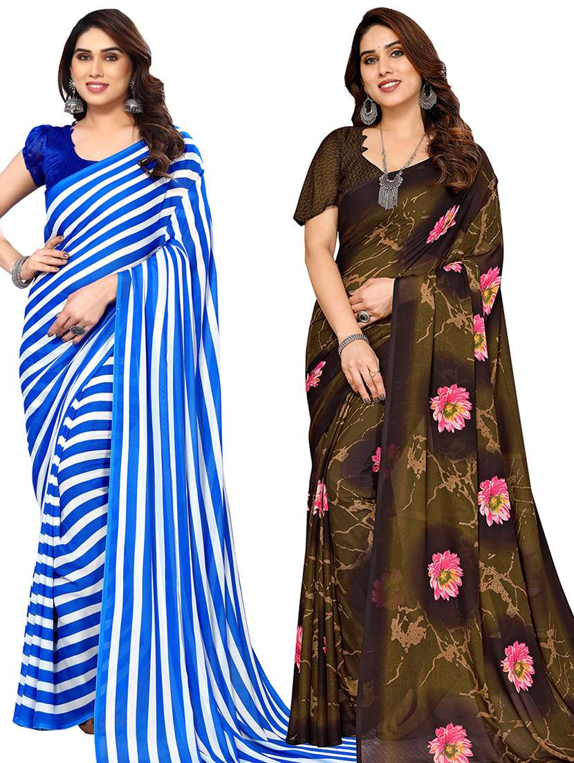 women pack of 2 casual wear combo sarees with blouse - 21444977 - Very Small Image - 1