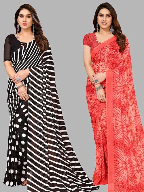 pack of 2 printed casual wear saree with blouse