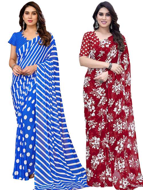 pack of 2 printed casual wear sarees with blouse - 21445011 - Very Small Image - 1