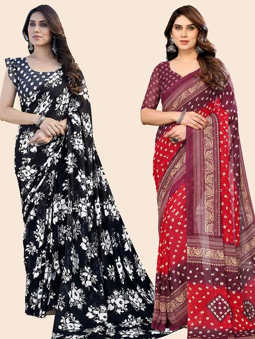pack of 2 casual wear sarees with blouse - 21445031 - Very Small Image - 1