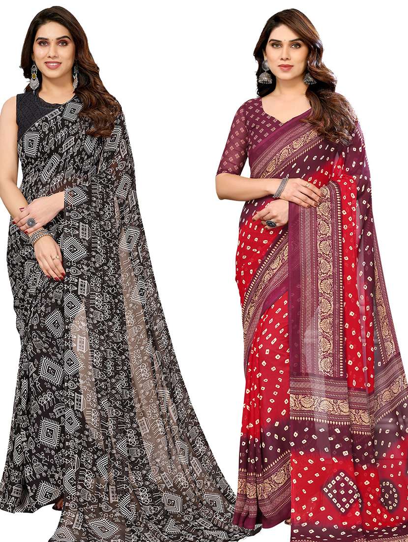 pack of 2 casual wear combo sarees with blouse - 21445095 - Very Small Image - 1