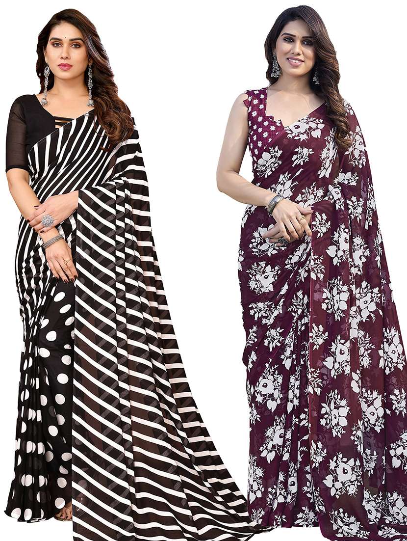 pack of 2 printed casual wear sarees with blouse - 21445141 - Very Small Image - 1