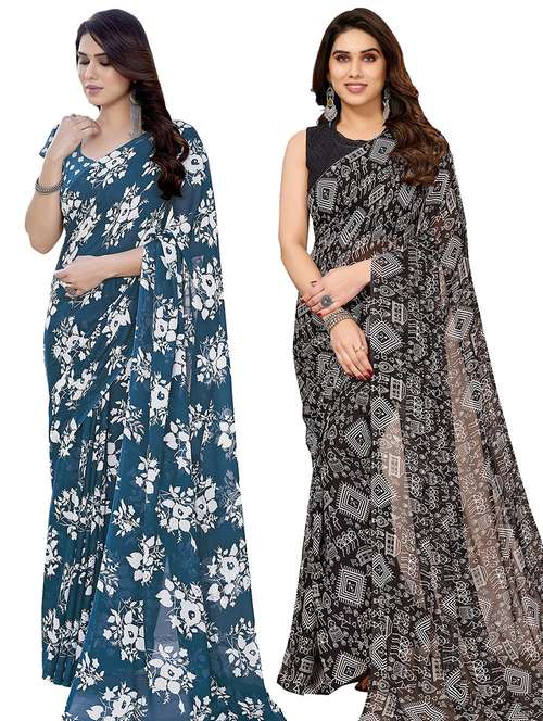 pack of 2 printed casual wear sarees with blouse - 21445143 - Very Small Image - 1