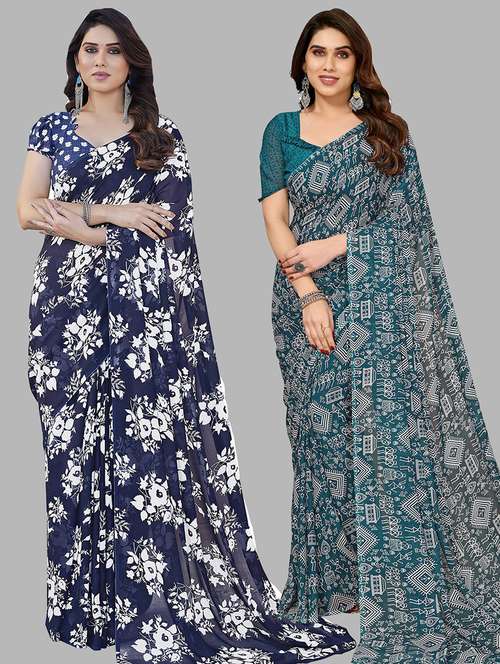 pack of 2 printed casual wear sarees with blouse - 21445145 - Very Small Image - 1