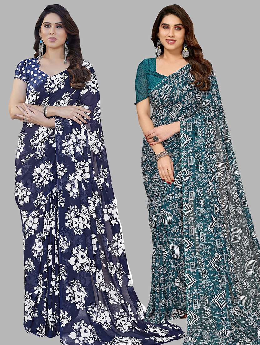 pack of 2 printed casual wear sarees with blouse