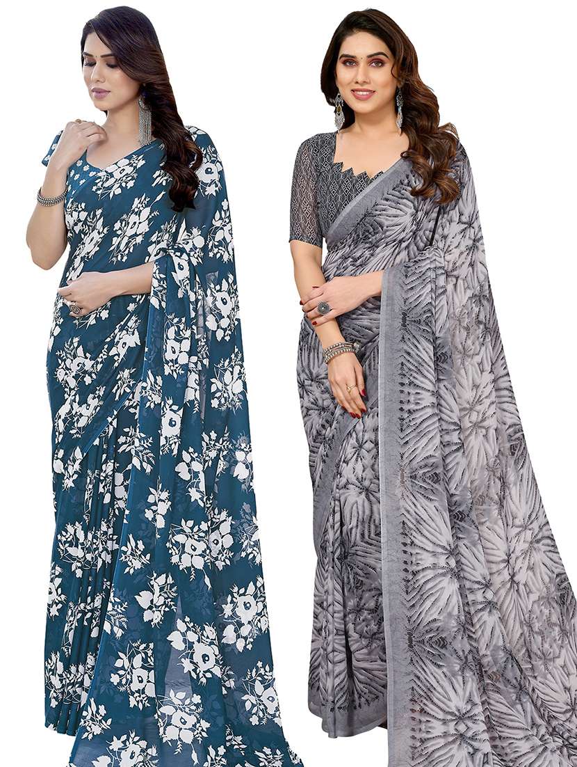 pack of 2 printed casual wear sarees with blouse - 21445156 - Very Small Image - 1