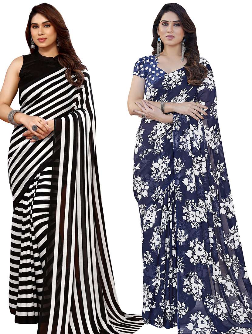pack of 2 printed casual wear sarees with blouse - 21445162 - Very Small Image - 1