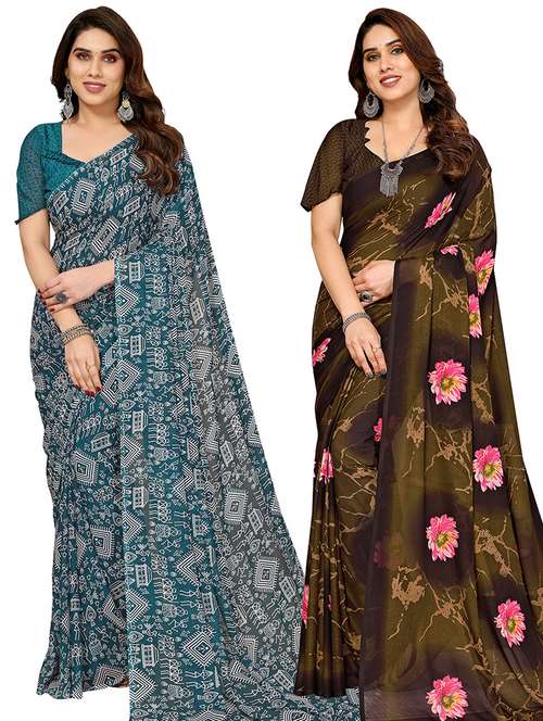pack of 2 printed casual wear sarees with blouse - 21445178 - Very Small Image - 1