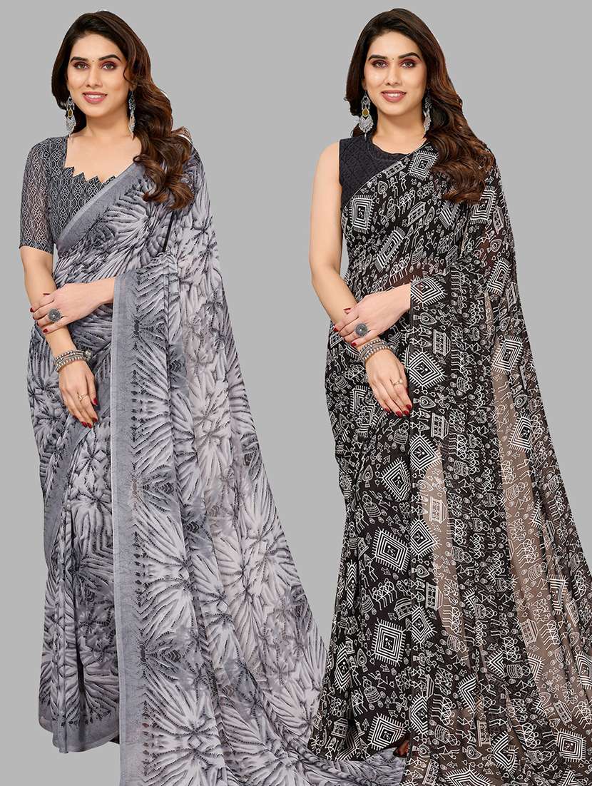 pack of 2 casual wear combo sarees with blouse - 21445221 - Very Small Image - 1