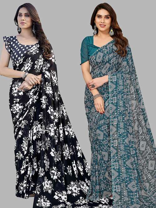 pack of 2 printed casual wear sarees with blouse