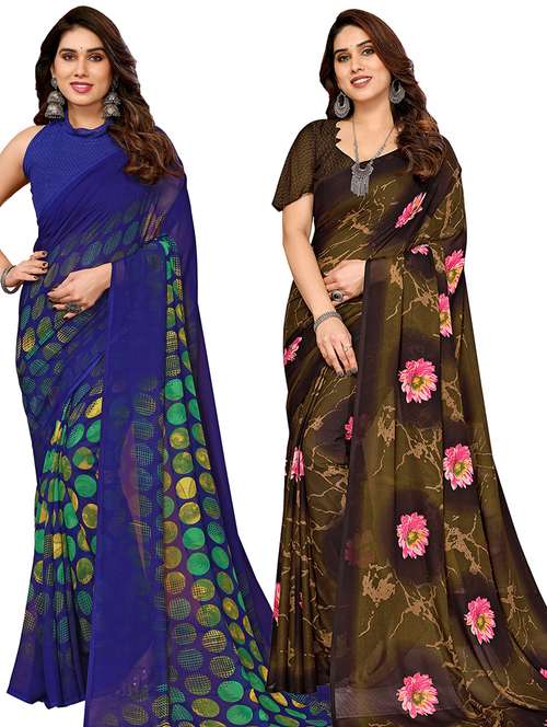 pack of 2 printed casual wear sarees with blouse - 21445278 - Very Small Image - 1