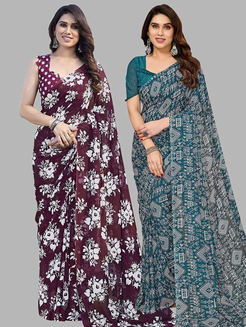 pack of 2 casual wear combo sarees with blouse