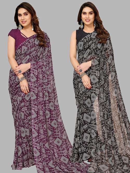 pack of 2 casual wear combo sarees with blouse - 21445322 - Very Small Image - 1