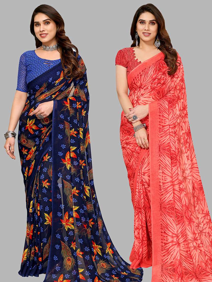 pack of 2 casual wear combo sarees with blouse - 21445326 - Very Small Image - 1