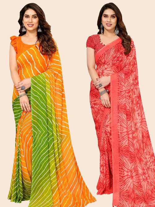 women pack of 2 casual wear combo saree with blouse