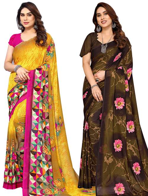 women pack of 2 casual wear combo sarees with blouse