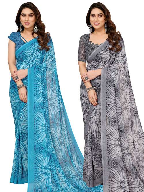 women pack of 2 casual wear combo sarees with blouse - 21445435 - Very Small Image - 1